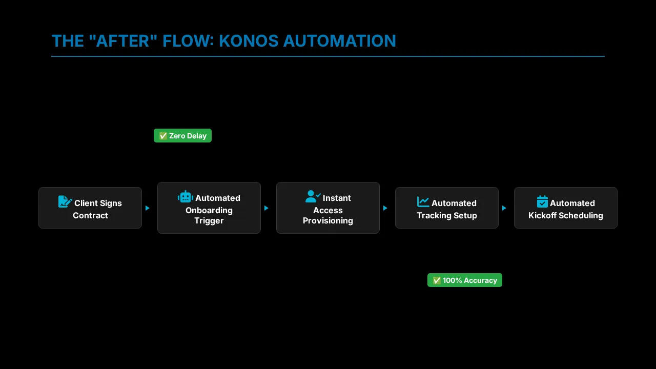 "Implementing these onboarding principles helped us recover an estimated $15,000 in previously lost revenue and drastically improved our client satisfaction scores. This is no longer a nice-to-have; it's essential for modern agencies."— A KONOS beta tester